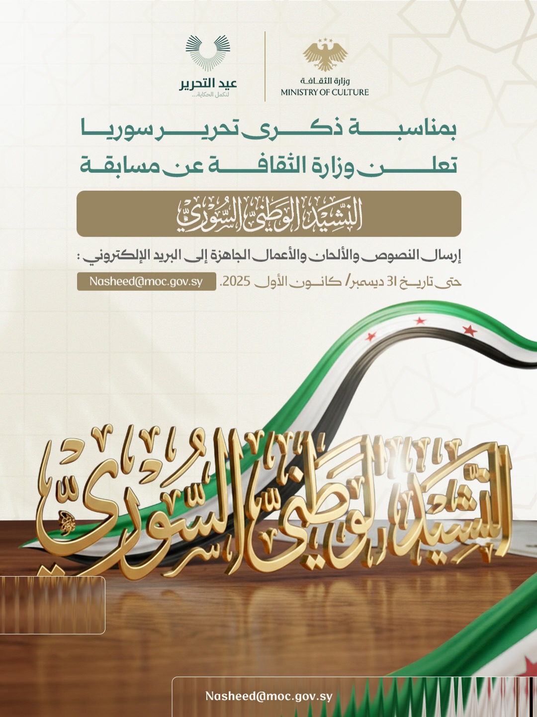 وزارة الثقافة تطلق مسابقة خاصة لكتابة النشيد الوطني وتلحينه
