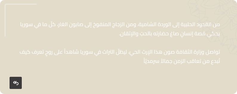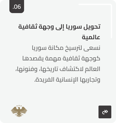 قيم وأولويات العمل الثقافي في سوريا أرشيف المقالات الشهري الأرشيف اختر شهر ديسمبر 2025 (25) نوفمبر 2025 (9) أكتوبر 2025 (7) سبتمبر 2025 (2) أغسطس 2025 (3) مايو 2025 (1) انضم إلينا في الاحتفاء بالثقافة السورية تابع أخبارنا وفعالياتنا عبر منصات التواصل الاجتماعي وكن جزءاً من ماضينا وحاضرنا.